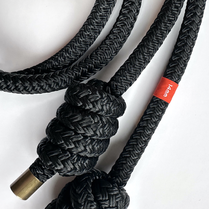 A robust rope which you can take with you anywhere. The handles have been securely hand-tied and provide a comfortable grip, featuring brass end caps to protect the end of the rope.